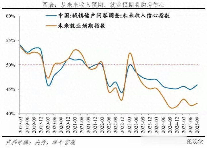 首先看制造业PMI新订单指数,这个指数一回升,说明企业接到的订单多了,工厂就会多招人、多生产,大家的就业和收入自然就有保障,2015年、2020年楼市回暖前,这个指数都是先触底反弹的;再看央行每季度公布的城镇储户收入信心指数和就业预期指数,这两个指数如果连续几个月上涨,就说明大家对未来的工作和收入心里有底,不再不敢花钱,买房的意愿自然就会提上来。简单说,只有经济稳了,大家赚钱有希望了,积压的购房需求才会真正释放,房价才有上涨的底气。